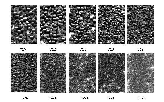 低碳铸钢砂的型号:G12,G14,G16,G18,G20,G25,G40,G50,G80