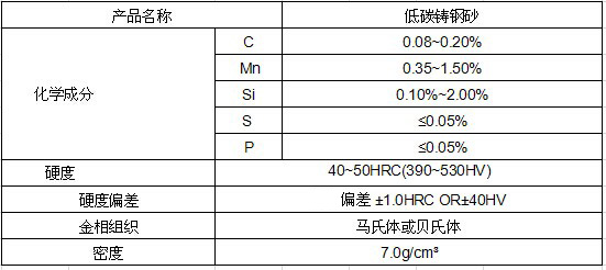 低碳铸钢砂的成分及技术参数表: