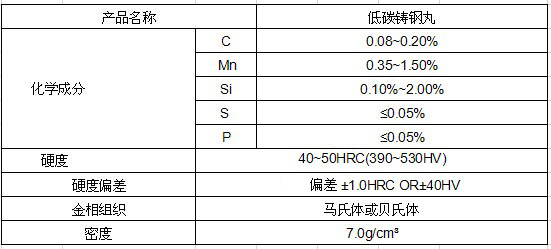 生产执行标准:国标“GB/T18838.3-2008低碳铸钢丸和砂磨料”、美国铸钢协会“SFSA20-66铸钢磨料标准”、美国汽车工程师协会“SAE J827铸钢丸标准”中华人民共和国黑色冶金行业“YB/T5149-93铸钢丸”及国际标准化组织“ISO11124-3:1993低碳铸钢丸铸钢砂标准”。